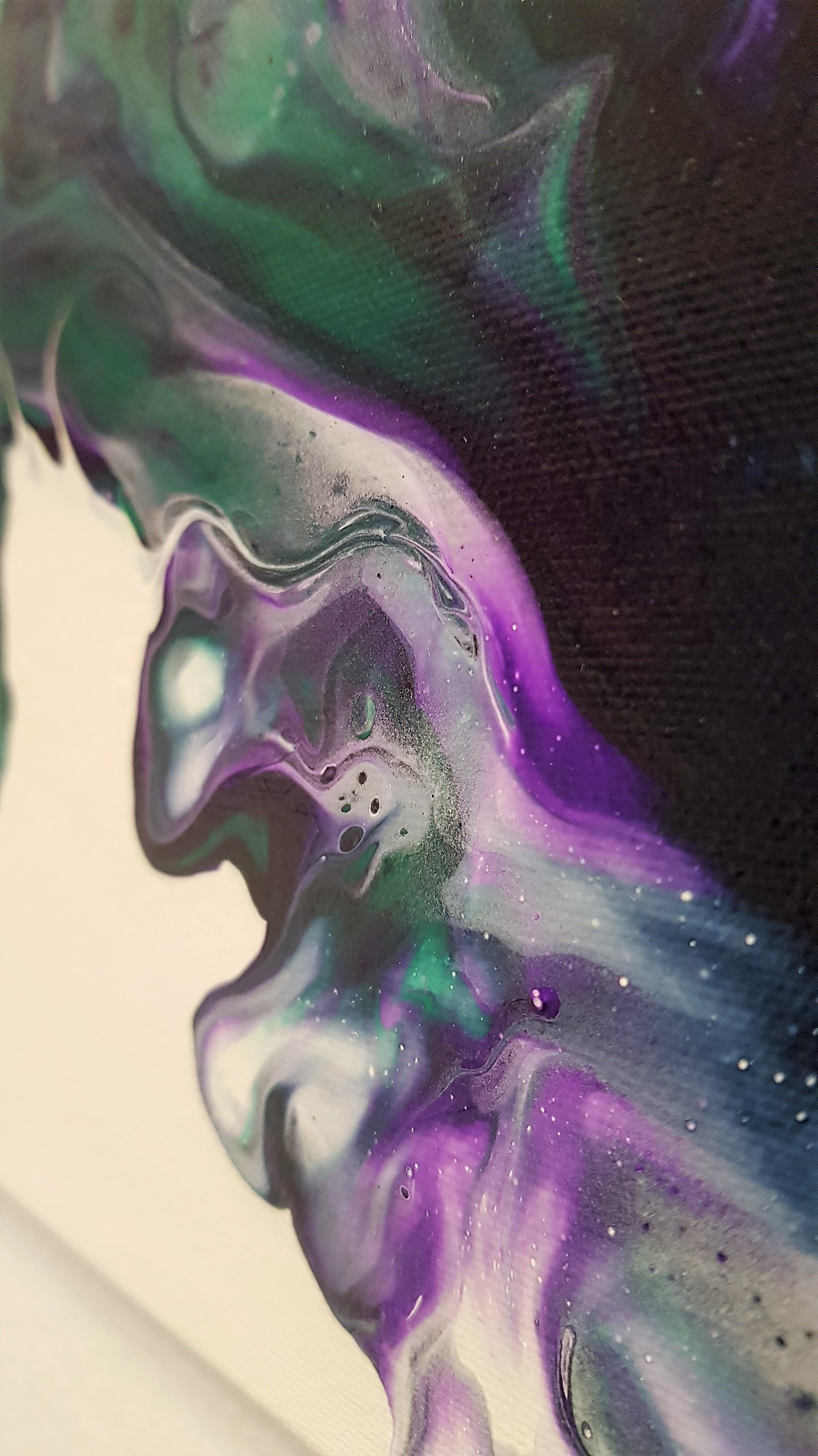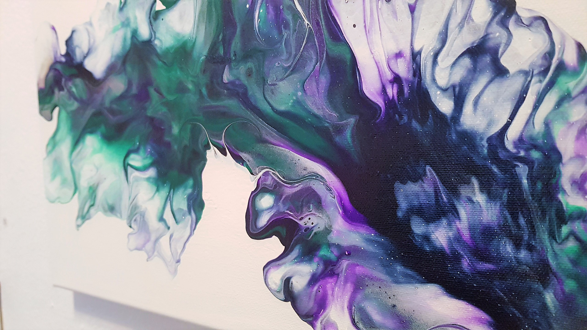 Teknik: Flytande akryl på canvastavla. Teknik med hårtork.